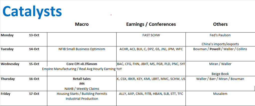 - CPI & Retail Sales: Delayed due to U.S. government shutdown.