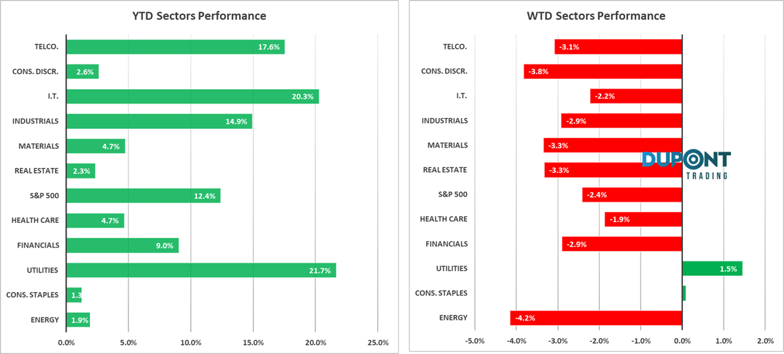 - Tech: Still leading, down just 2.2% vs. market’s 2.4%.