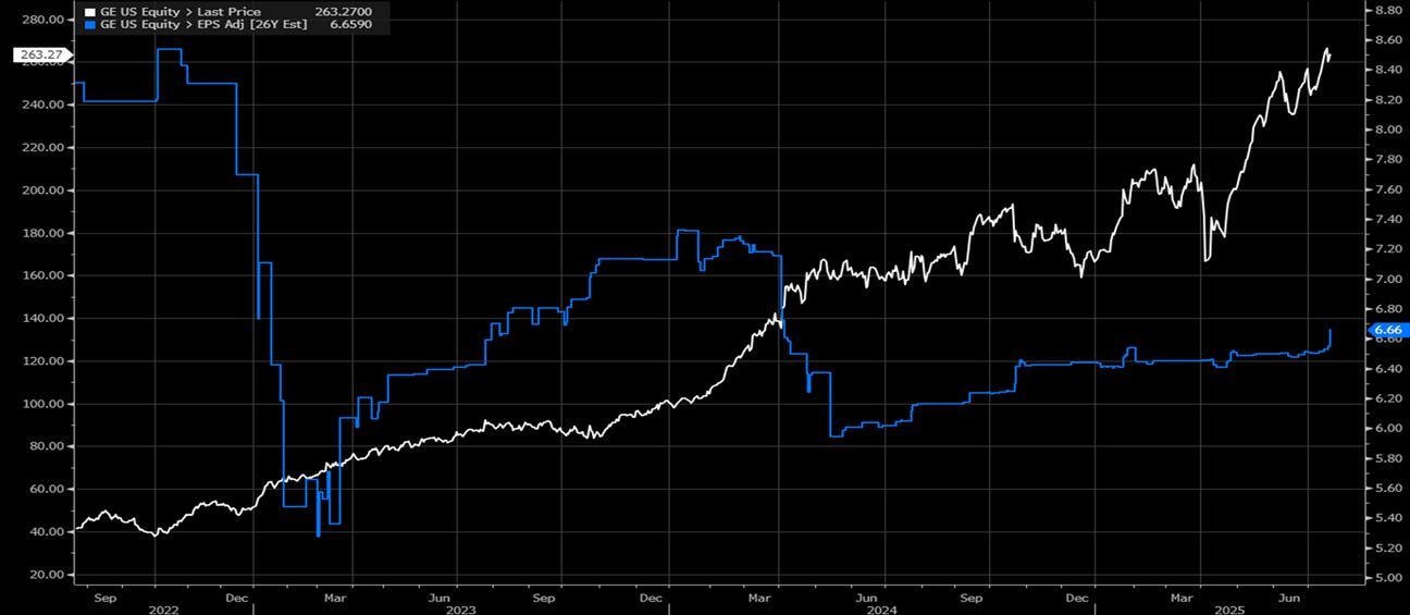 GE last (lhs) vs 2026 EPSe (rhs).