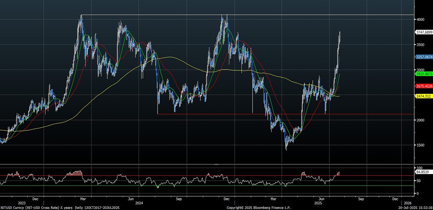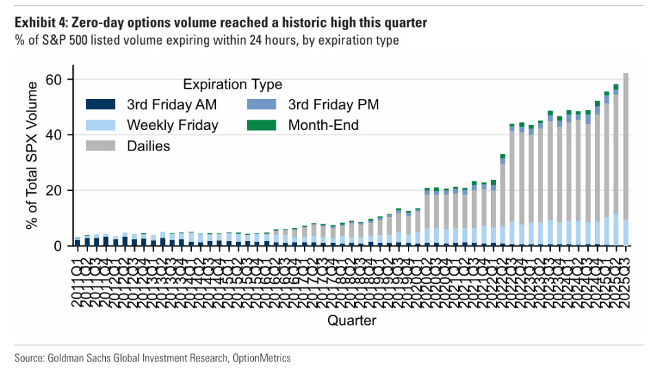 - Broker-dealer stocks have surged to new highs, driven by a boom in retail trading. Retail investors account for a significant share of market volumes, especially with over 60% of options trades now in zero day to expiry products.