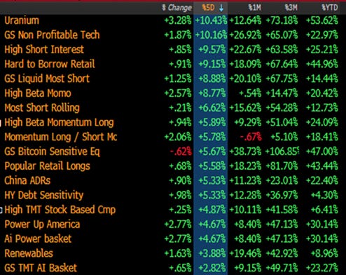 - Retail traders currently drive short squeezes in non-profitable tech and heavily shorted names, propelling them over 10% in a week.