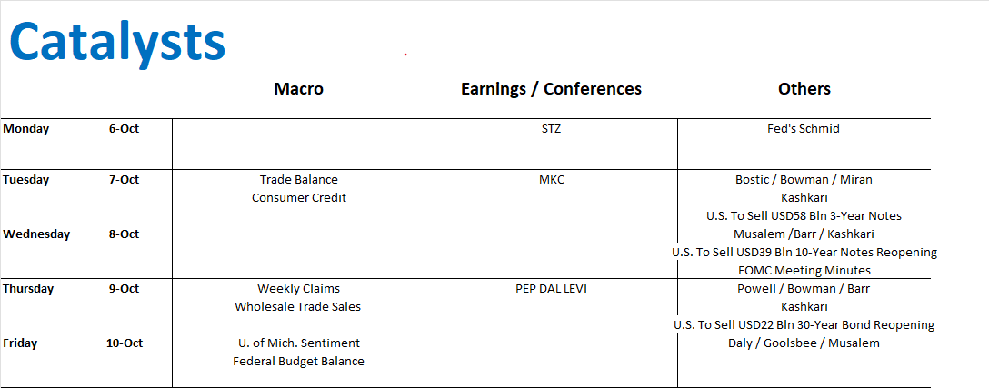 - Government Shutdown: Markets unfazed—for now. If prolonged, risks to the economy increase.