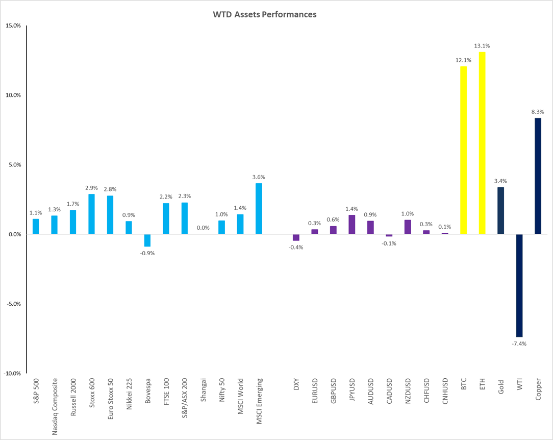 - Crypto: 🚀 Bitcoin hit a new all-time high of $125,000, Ethereum also surged