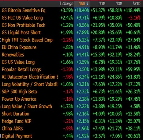 Retail traders dominate, pushing non-profitable tech (+8.5%), meme stocks (+3.5%), and most-shorted names (+8%). But leadership from quality names is fading.