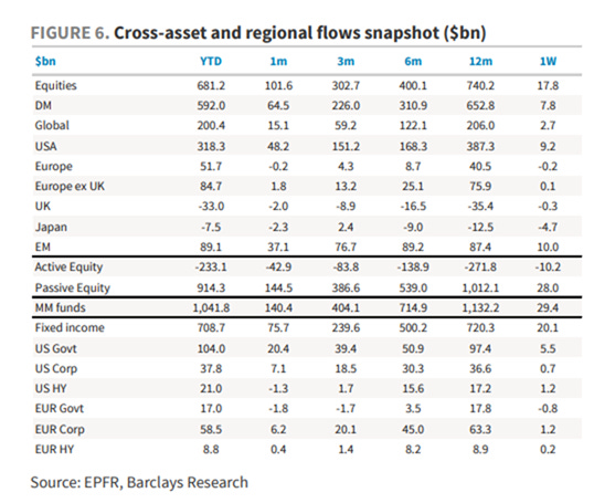 A key structural force behind the move: massive inflows into equities, both long-term and short-dated.